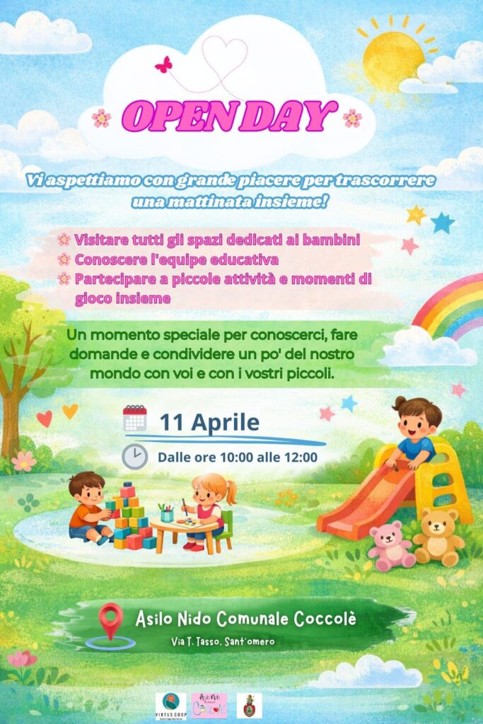 OPEN DAY ASILO NIDO COCCOLE’ 2026 2 Aprile 2026 Pubblicato in Amministrazione Allegati LOCANDINA 273 Kb